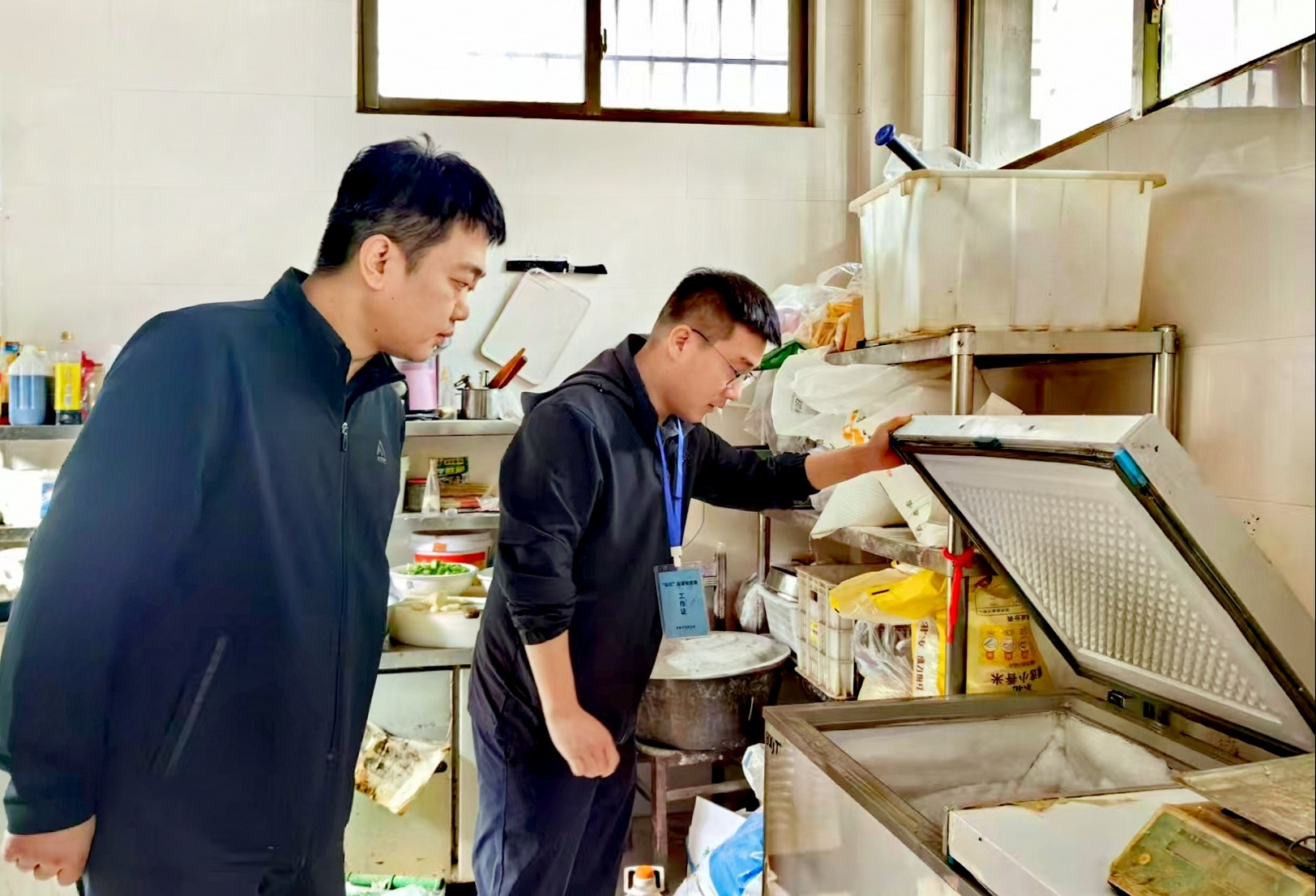 淇县纪委监委在浚县伾山街道办事处检查违规吃喝情况。