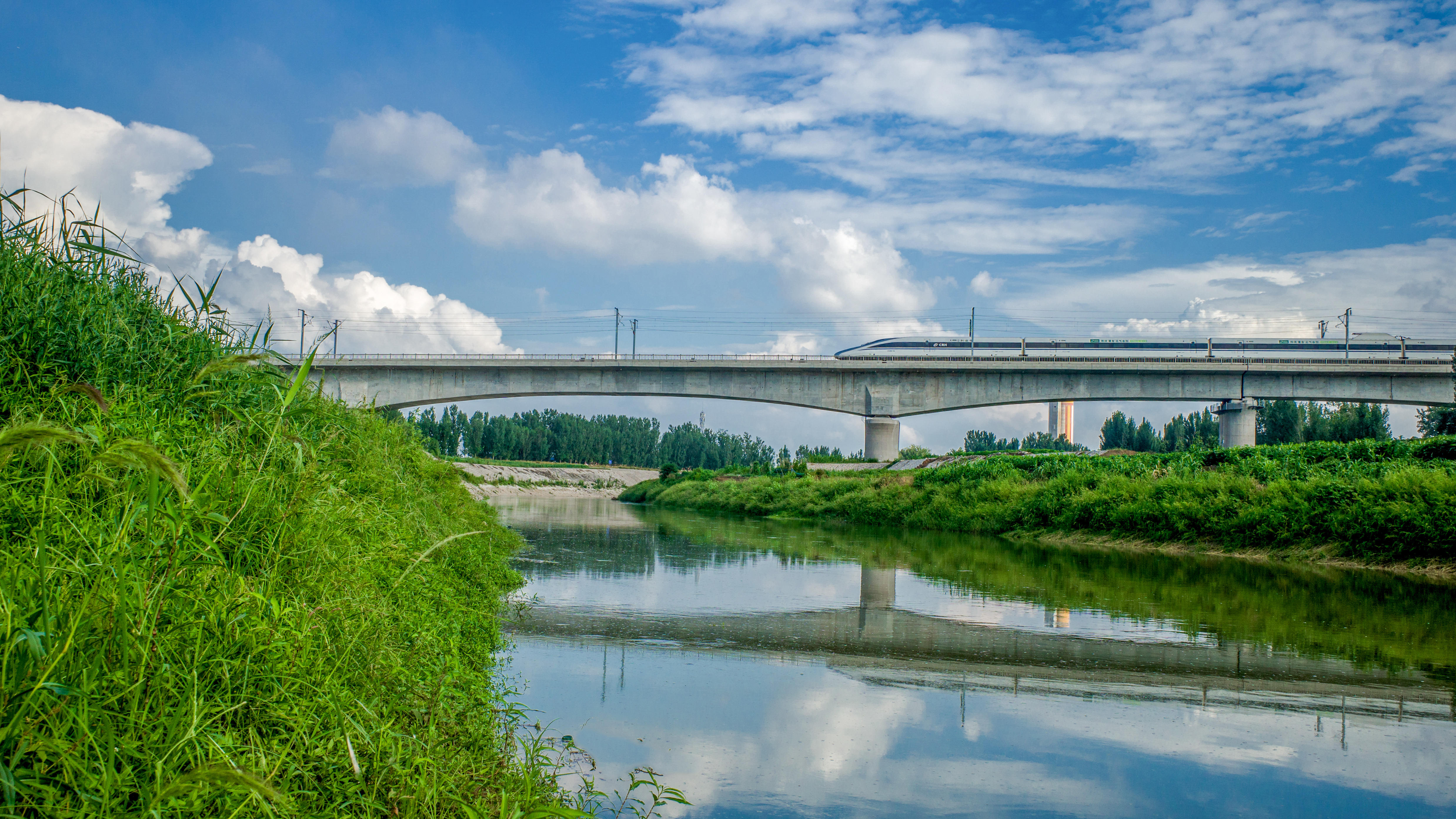 银白高铁如时代箭矢,呼啸着穿越在卫河之上,古老的漕运水波与现代的钢铁脉络在此刻交汇。(浚县纪委监委 代文广 摄)