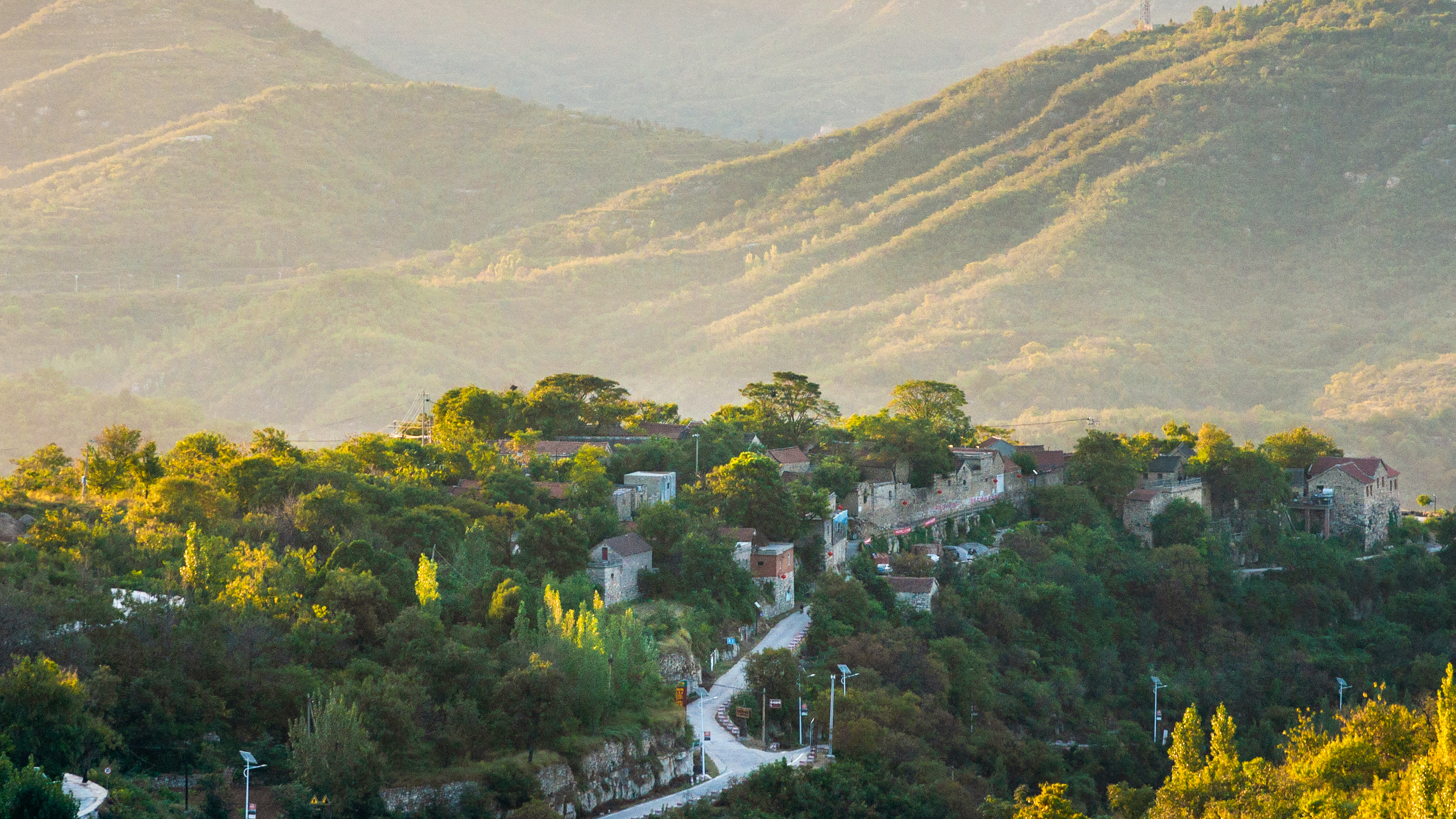 朝阳初升,阳光洒向层叠的屋瓦与远山,西顶村静卧于鹤山区的苍翠怀抱之中,石阶蜿蜒、红瓦参差、远山如黛,勾勒出太行深处原始而安宁的村落画卷。(鹤山区纪委监委 张东辉 摄)