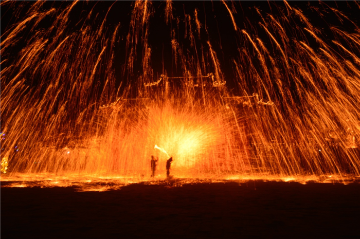 “焰火+舞龙”热热闹闹庆元宵。伴随着激越的鼓点,“火龙”上下翻飞,左挪右腾,街边的铁水匠舀起沸腾的铁水和特制液体抛向夜空,划出一道 “火树银花合,繁光远缀天”的美景。