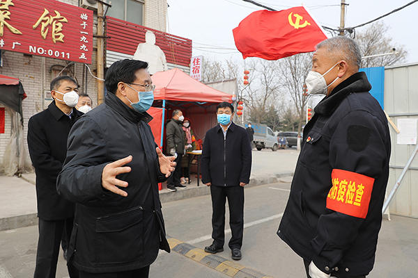 大河网讯(记者李铮/文 董亮/图)2月1日,省委书记王国生到安阳市农村、社区、防疫机构等地检查疫情防控工作,并召开豫北五地疫情防控工作调度会,对下一步疫情防控工作进行安排部署。