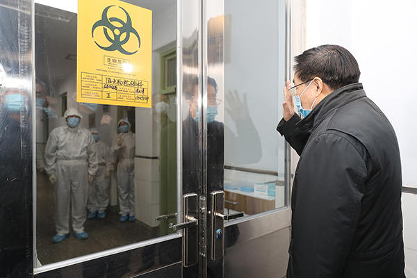 在安阳市疾控中心,微生物检验员包小冰和同事们正在进行病毒检测,王国生透过玻璃门窗向大家挥手问好,通过视频连线慰问奋战在隔离病房中的医疗工作者,王国生叮嘱有关负责同志,要关心关爱一线医护人员,优先保障防护物资,注重心理压力疏导,扎实做好医护人员安全防护工作。