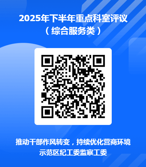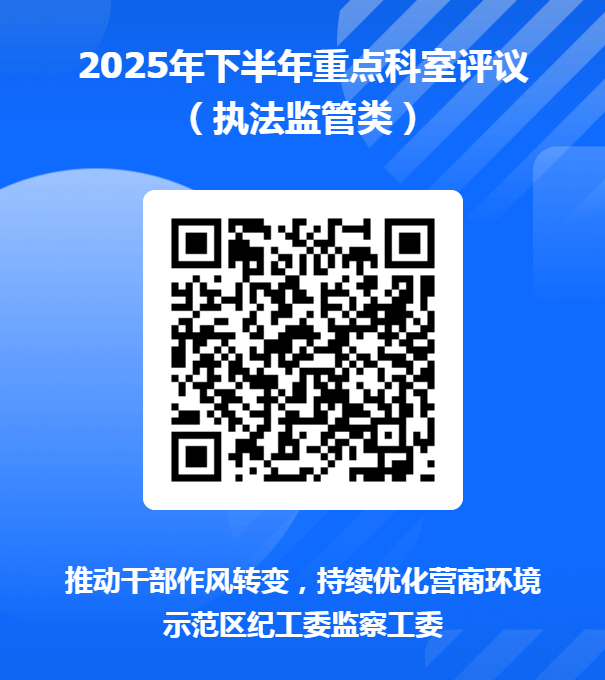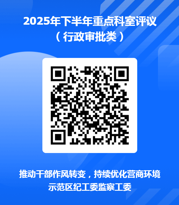 为进一步推动干部作风转变,助力示范区营商环境持续提升,根据《2024年区直单位重点科室评议方案》(济区纪办发〔2024〕14号),现对执法监管、行政审批、综合服务三类区直单位重点科室2025年下半年工作情况开展评议,欢迎社会各界、广大群众积极参与,围绕工作作风、依规履职、政务服务、执法监管、政商关系等方面,对相关科室进行评议。