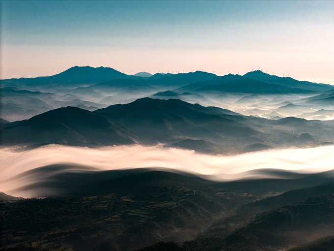 九月,灵宝市苏村乡的大青山,近处雨后的雾如流动的白丝带,轻轻在山尖飘动,远处的雾气如轻柔的白纱,若隐若现地萦绕在山间,放眼望去,好一幅美景如画!(灵宝市纪委监委供 李乐山 摄)