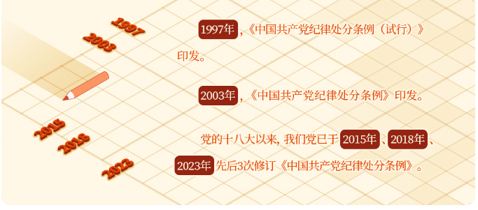 2023年12月,中共中央印发了修订后的《中国共产党纪律处分条例》,这是党的十八大以来,我们党第3次修订《中国共产党纪律处分条例》。下面,我们一起回顾《条例》如何与时俱进,不断修订完善。