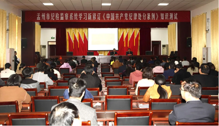 10月26日,孟州市纪检监察系统举行学习新修订《中国共产党纪律处分条例》知识测试,该市纪委监察委机关全体干部、市委巡察办全体干部、各乡镇办事处纪(工)委书记及派驻市直各单位纪检监察组组长等80余人参加了测试。