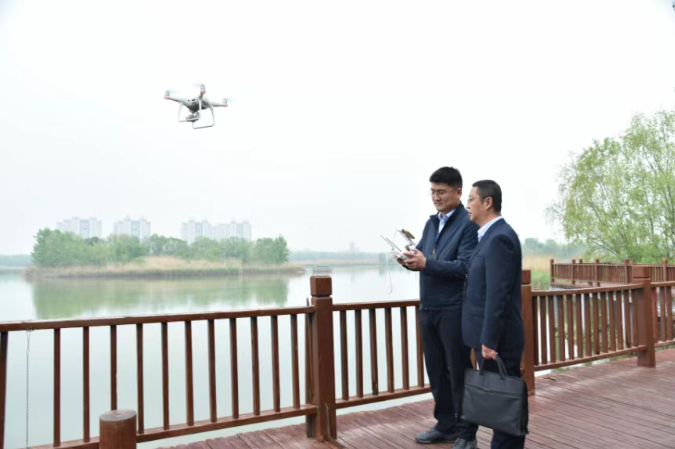 濮阳县纪委监委深化科技赋能,对黄河流域生态保护、河道治理、湿地管护等情况开展立体化、全覆盖监督,精准发现并推动整改生态环境突出问题。图为该县纪检监察干部在金堤河国家湿地公园实地检查湿地管护责任落实情况。(濮阳县纪委监委 刘濮生 摄)