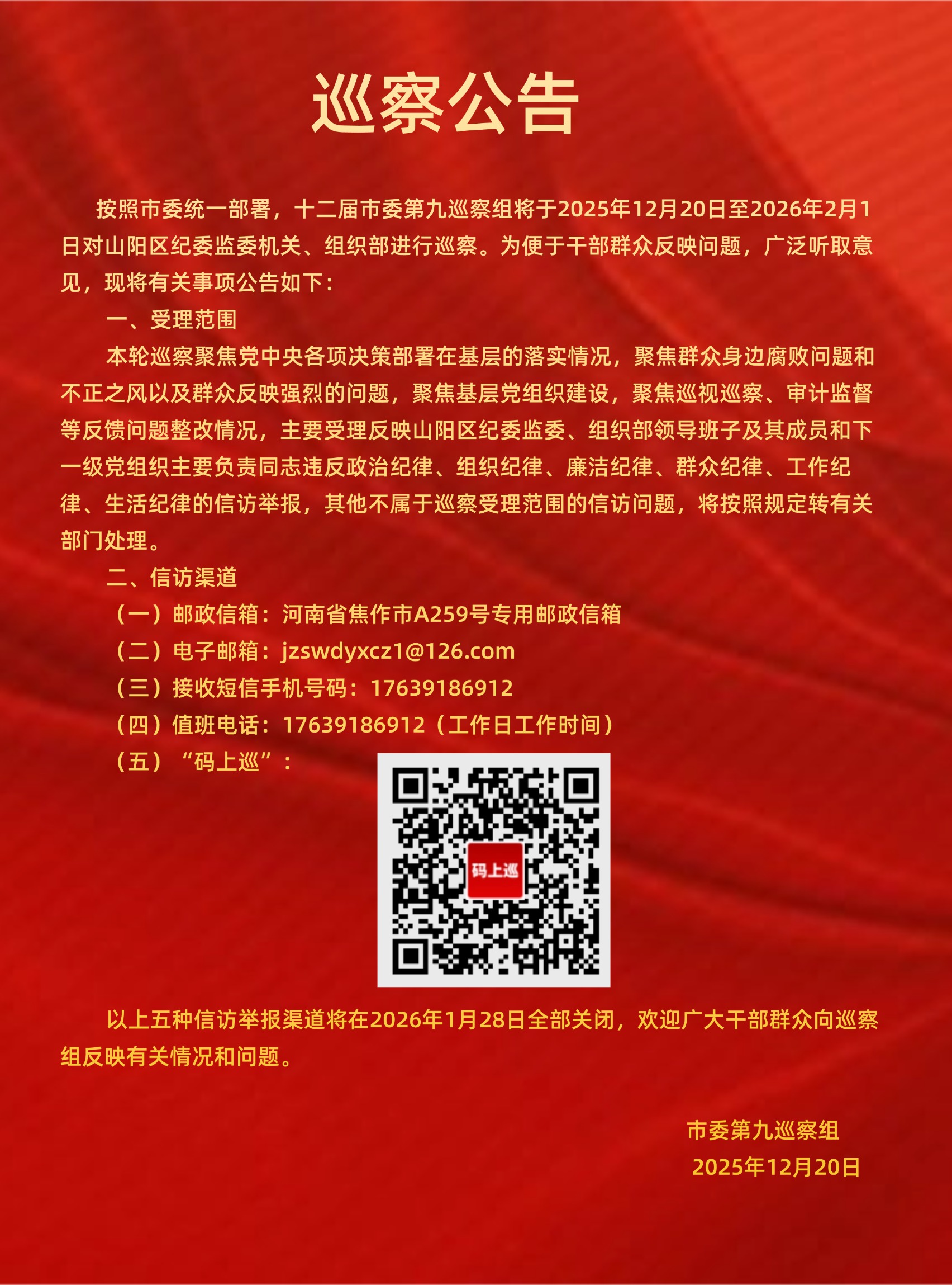 • 十届山阳区委第十一轮巡察完成进驻,举报方式公布