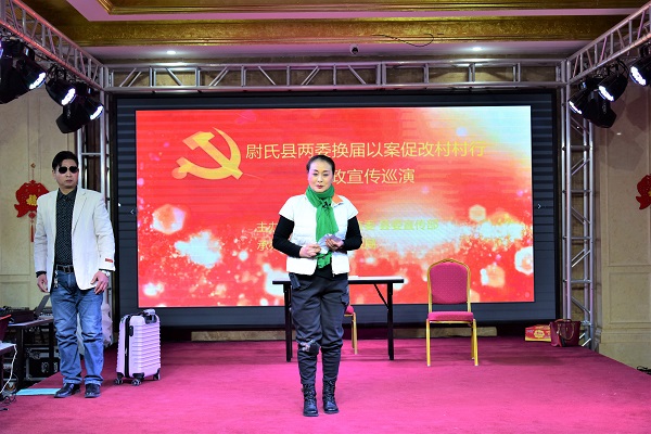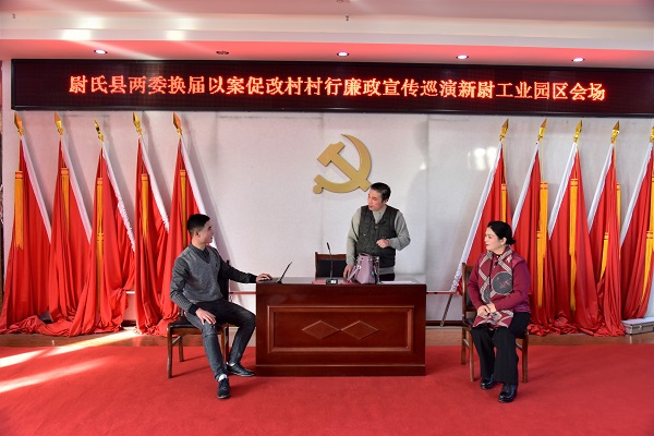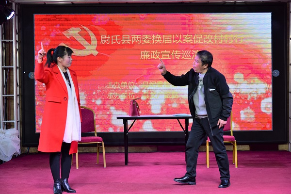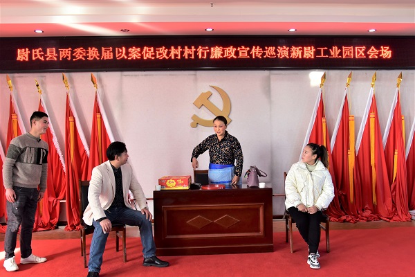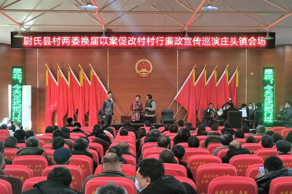 近日,为深入贯彻落实县委村(社区)“两委”换届以案促改村村行工作要求和部署,支持保障换届工作稳妥有效推进,由尉氏县纪委监委、县委宣传部牵头,县文广旅局邀请国家二级编剧赵小炉、国家二级导演孙志成,创作了以村两委换届为题材的廉政戏曲《父女竞选》《屠夫还乡》《选谁》等,为广大党员干部精心准备了一场充满“廉味”的文艺大餐,将廉政文化送到群众家门口,送到群众心坎上。