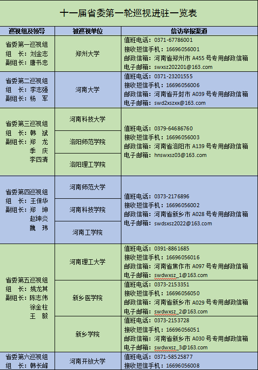 十一届省委第一轮巡视进驻一览表