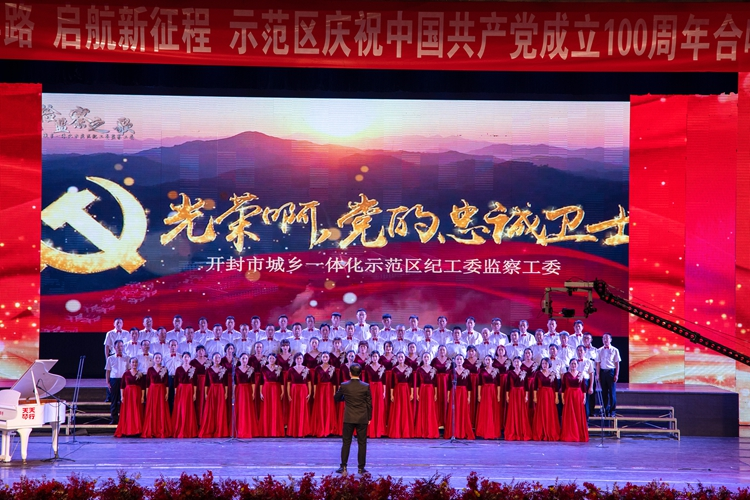 为庆祝中国共产党建党100周年,深情讴歌党的伟大成就,弘扬党的光辉历程,6月24日下午,示范区纪工委监察工委组织70余名机关干部到小宋城参加由该区举办的“奋斗百年路 启航新征程”庆祝中国共产党成立100周年合唱展演活动。