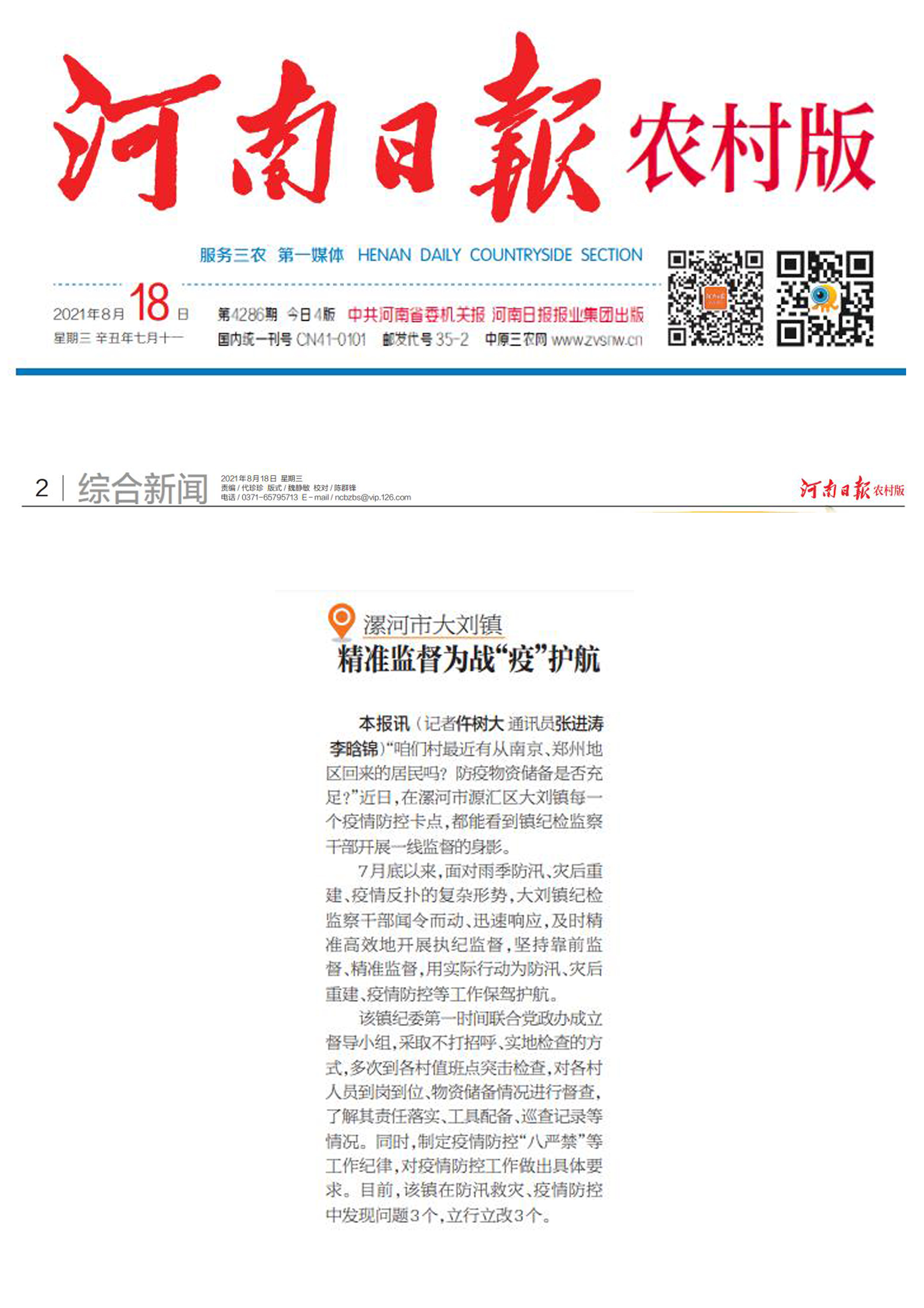 【河南日报农村版】精准监督为战“疫”护航