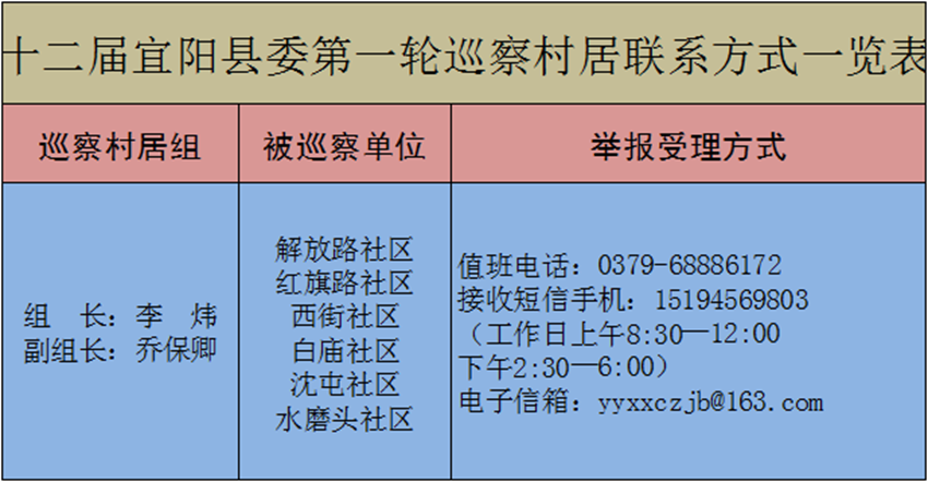 巡察期间,巡察村居组开通专门值班电话、电子邮箱、接收短信手机,受理信访举报的时间为工作日上班时间。