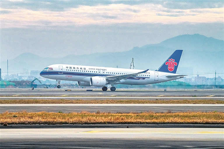 搭起“空中桥梁”,连接大江南北,让游子归路不再迢迢。据交通部门预测,今年春运期间全社会跨区域人员流动量将达90亿人次。如此规模宏大的人口流动对交通运输服务提出了更高要求。1月9日起,国航开始安排C919大飞机执行北京至重庆快线航班;南航3架C919大飞机也在春运期间全部投入运营,执飞广州往返杭州、上海、海口、成都等多条航线,仅在14日当天,就已承运旅客1200余人次。国产大飞机助力春运,归途愈加通畅。