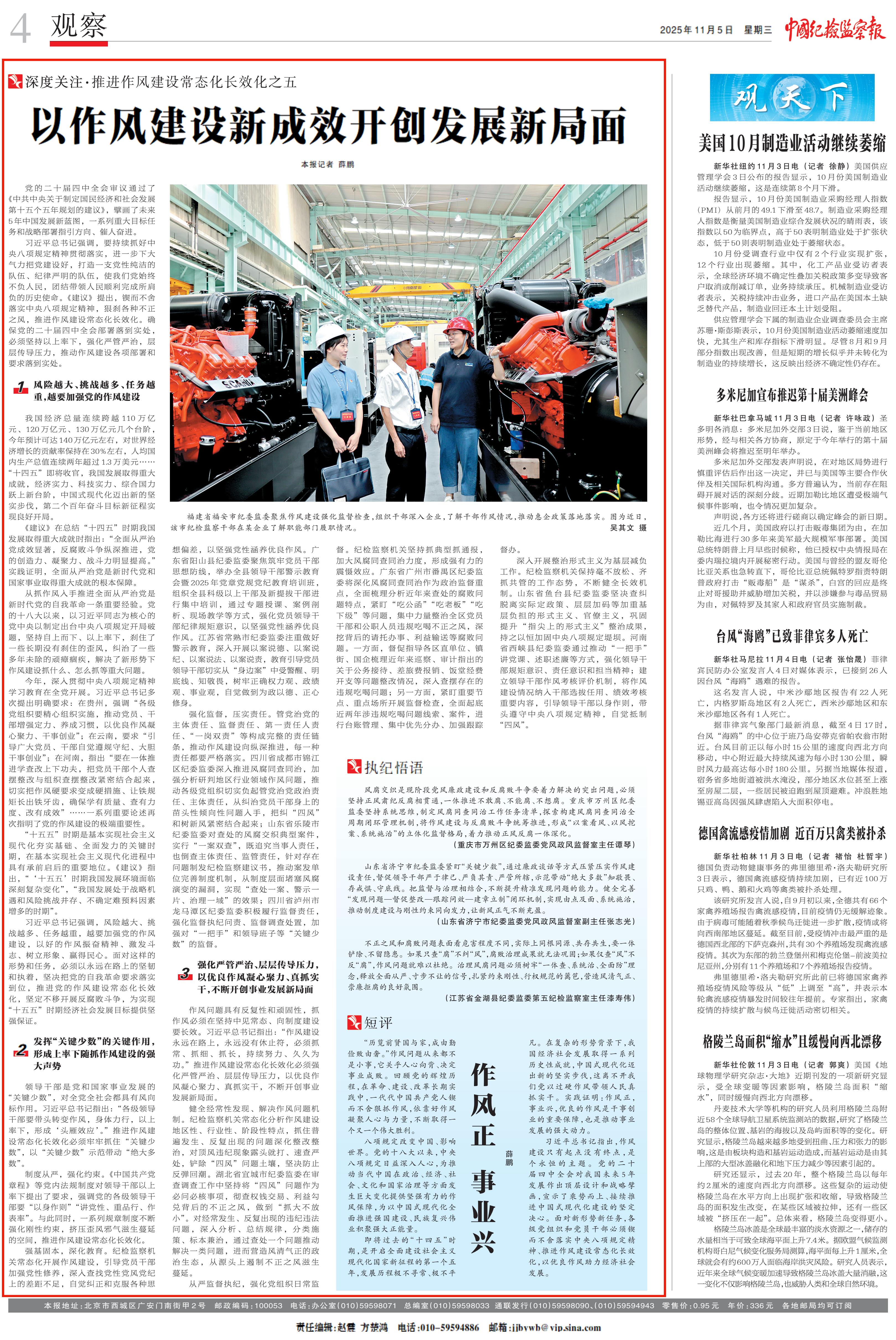 深入开展整治形式主义为基层减负工作。纪检监察机关保持毫不放松、齐抓共管的工作态势,不断健全长效机制。山东省鱼台县纪委监委坚决查纠脱离实际定政策、层层加码等加重基层负担的形式主义、官僚主义,巩固提升“指尖上的形式主义”整治成果,持之以恒加固中央八项规定堤坝。河南省西峡县纪委监委通过推动“一把手”讲党课、述职述廉等方式,强化领导干部规矩意识、责任意识和担当精神;建立领导干部作风考核评价机制,将作风建设情况纳入干部选拔任用、绩效考核重要内容,引导领导干部以身作则,带头遵守中央八项规定精神,自觉抵制“四风”。(薛鹏)