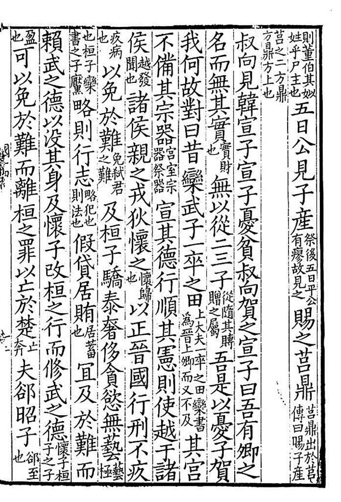 清代刻本《国语》书影,这一页展示的是叔向贺贫的故事。资料图片