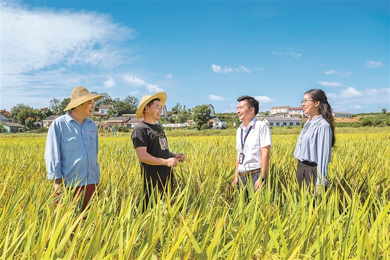 湖北省宜昌市夷陵区纪委监委紧盯惠农政策落实、涉农补助资金发放、粮食购销等关键环节,组织纪检监察干部深入农民专业合作社、田间地头等秋粮生产一线开展监督,确保颗粒归仓。图为该区纪检监察干部在鸦鹊岭镇凤凰观村了解相关情况。聂爽 摄
