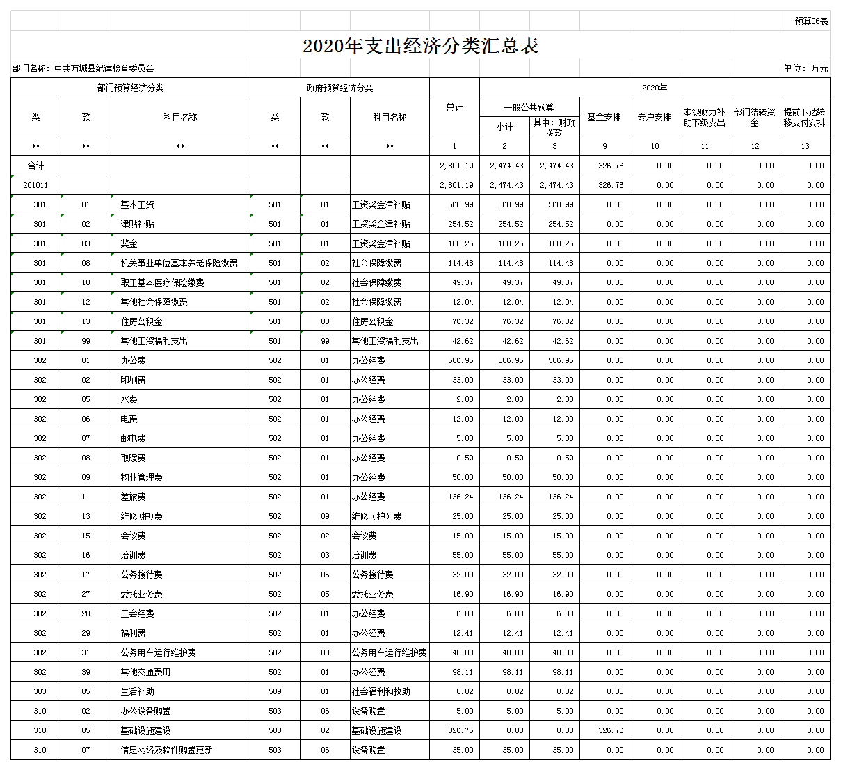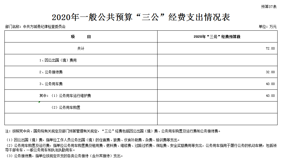 附:中共方城县纪律检查委员会2020年度部门预算表