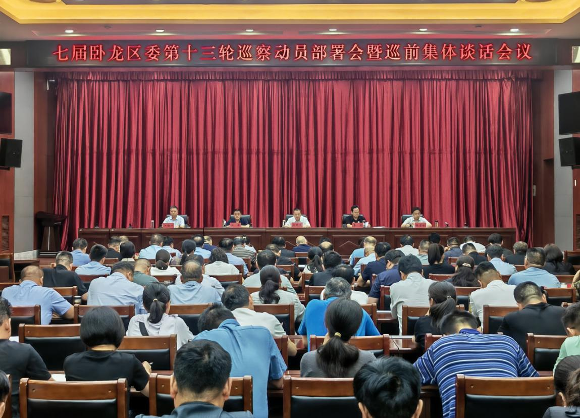 6月13日,七届卧龙区委第十三轮巡察动员部署会暨巡前集体谈话会议召开。会议深入学习贯彻习近平总书记关于巡视工作的重要论述和党中央、省委、市委关于巡视巡察工作的新部署新要求,对第十三轮巡察工作进行动员部署,对巡察组组长进行集体谈话。区委常委、区委巡察工作领导小组组长赵群峰出席会议并讲话。区委常委、区委巡察工作领导小组副组长李耀主持会议。