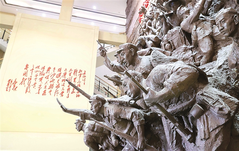 理想信念是中国共产党人的政治灵魂。在革命、建设、改革各个历史时期,一代又一代共产党人为了党和人民事业英勇奋斗,甚至献出生命,靠的就是理想信念。图为红军长征湘江战役纪念馆内主题雕塑,展现了红军将士前仆后继、浴血奋战的精神。图片来源:视觉中国