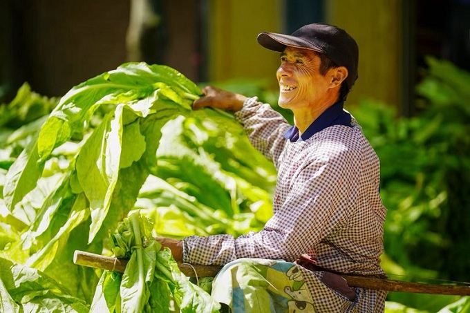 临近秋分,灵宝市五亩乡西淹村的烟叶到了收获的季节,烟农抢抓天气,急着将烟叶装载回家,看着硕大的烟叶,烟农看在眼里喜在心里。(灵宝市纪委监委 花雪红 摄)