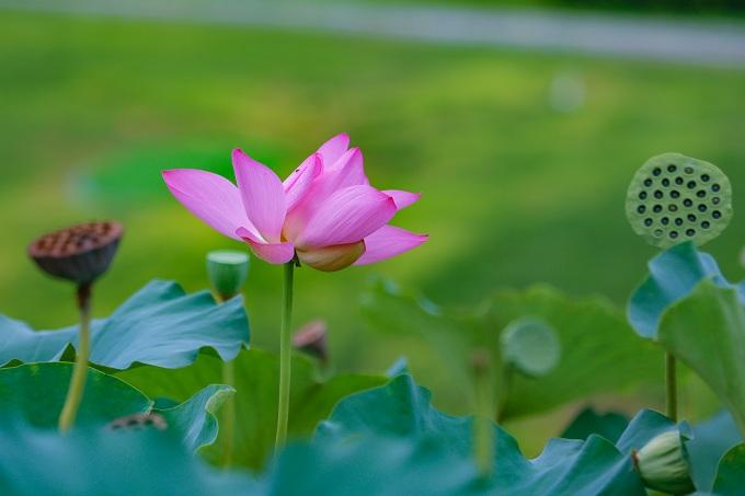 粉色荷花在荷叶间盛放,姿态娇艳。白露时分,虽仍有夏的余韵,但秋意已悄然浸润。此时的荷花,既留存着夏日的柔美,又因白露,多了份属于初秋的沉静与婉约。(林州市纪委监委 秦阳 摄)