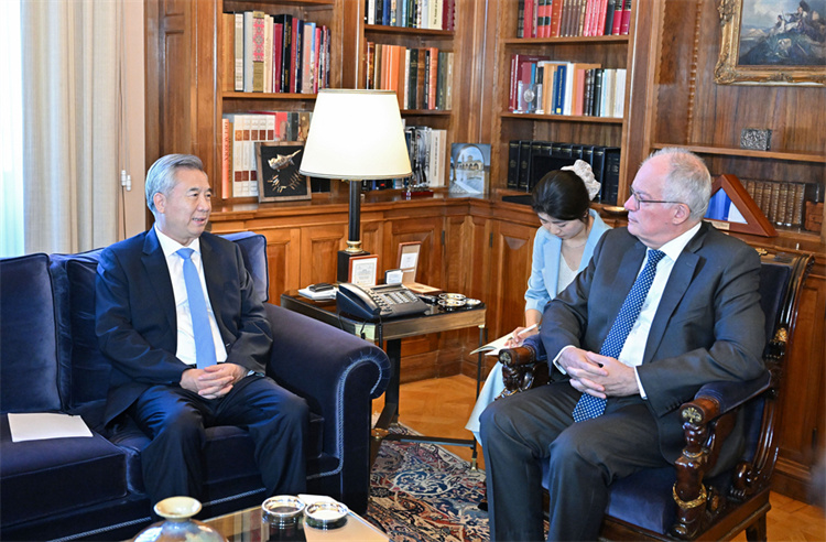 9月17日至20日,应希腊新民主党邀请,中共中央政治局常委、中央纪委书记李希率中共代表团对希腊进行正式友好访问。这是当地时间9月19日,李希在雅典会见希腊总统塔苏拉斯。 新华社记者 岳月伟 摄