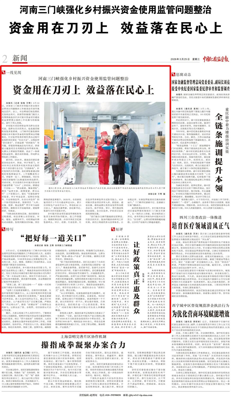 机制的创新成效,最终要转化为群众的满意度。2025年,渑池县新批复项目3个月内建成率达92%,带动就业1.5万余人。这些数字背后,是纪检监察机关用“全周期管理”为乡村振兴项目保驾护航的生动实践。从一地的先行先试,到全市的面上推开,纪检监察机关将持续通过把监督触角延伸到基层末梢,让好政策落到地面上,持续化作群众脸上的笑容、口袋里的收入、脚下的致富路。(张弛 王奇)