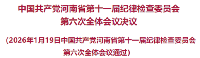 中国共产党河南省第十一届纪律检查委员会第六次全体会议,于2026年1月19日在郑州举行。出席全会的有省纪委委员45人,列席280人。