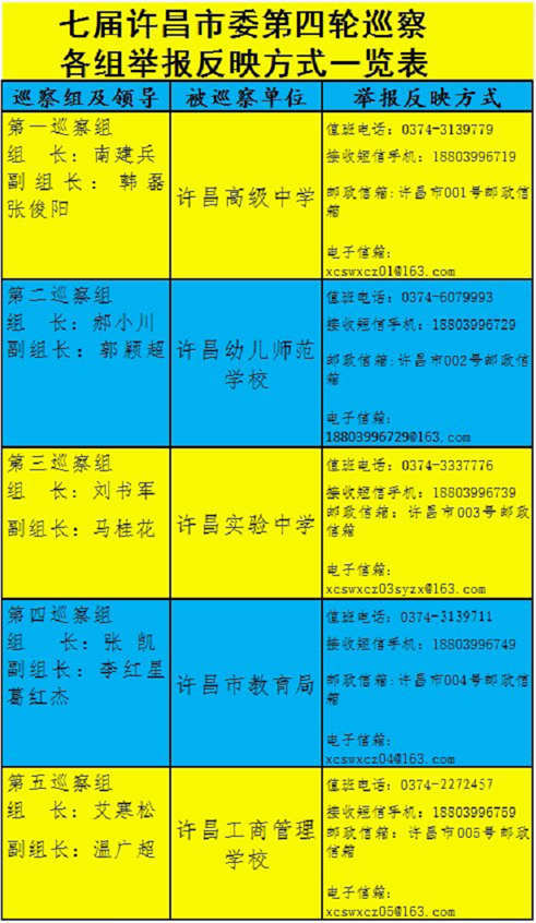按照许昌市委统一部署,8月7日,市委五个巡察组分别进驻许昌高级中学、许昌幼儿师范学校、许昌实验中学、许昌市教育局、许昌工商管理学校开展常规巡察,七届许昌市委第四轮巡察从即日起正式展开。
