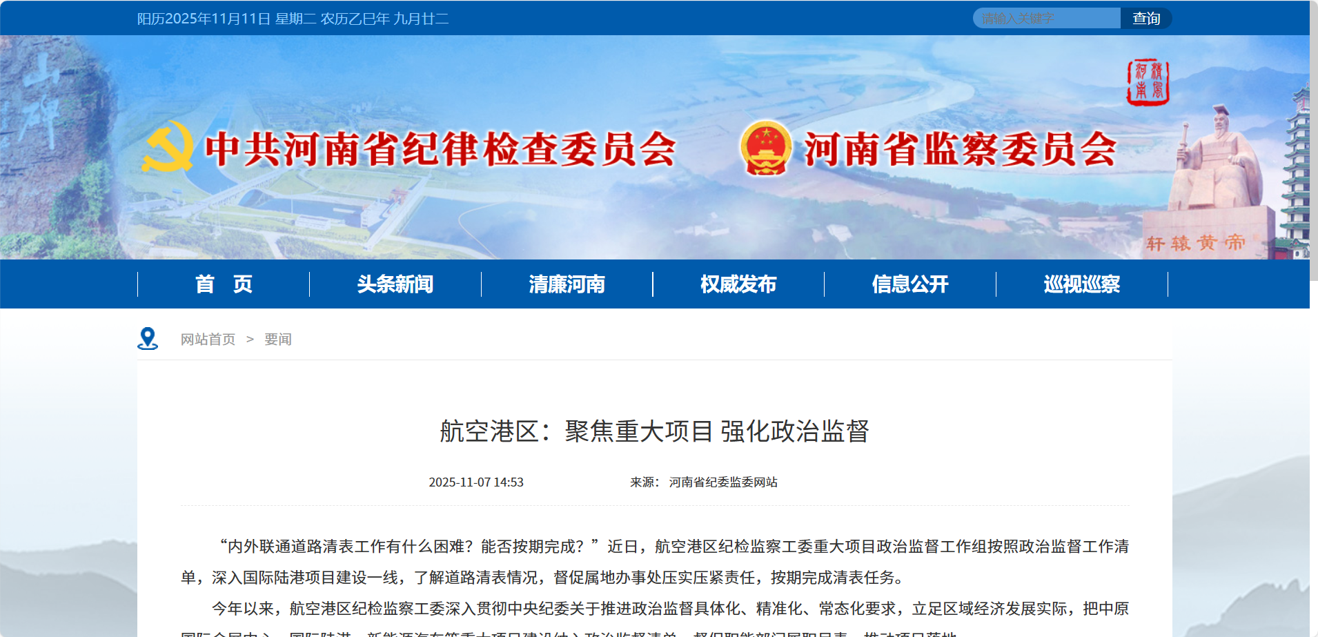 今年以来,航空港区纪检监察工委深入贯彻中央纪委关于推进政治监督具体化、精准化、常态化要求,立足区域经济发展实际,把中原国际会展中心、国际陆港、新能源汽车等重大项目建设纳入政治监督清单,督促职能部门履职尽责、推动项目落地。