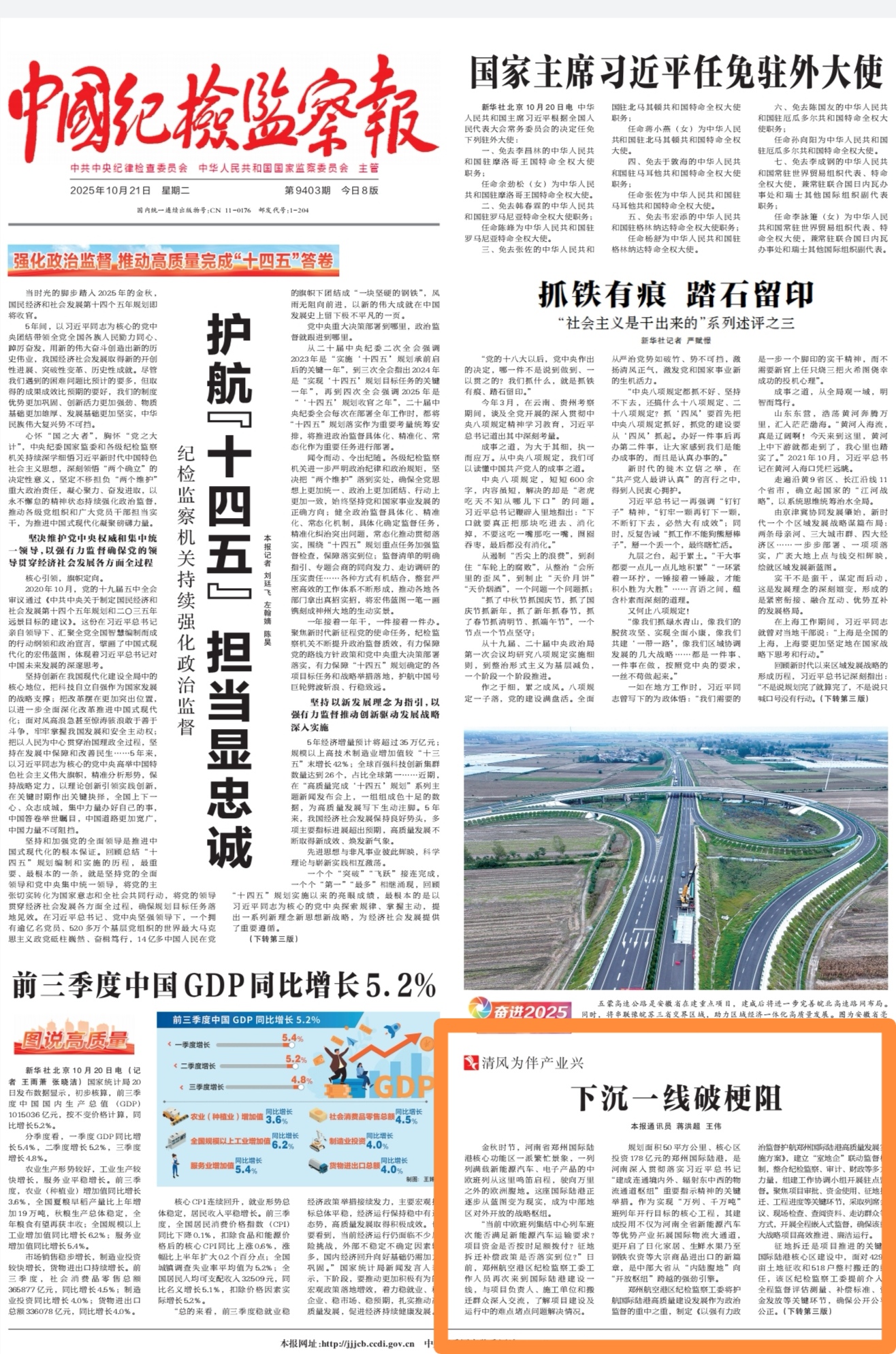 《中国纪检监察报》头版“清风为伴产业兴”栏目