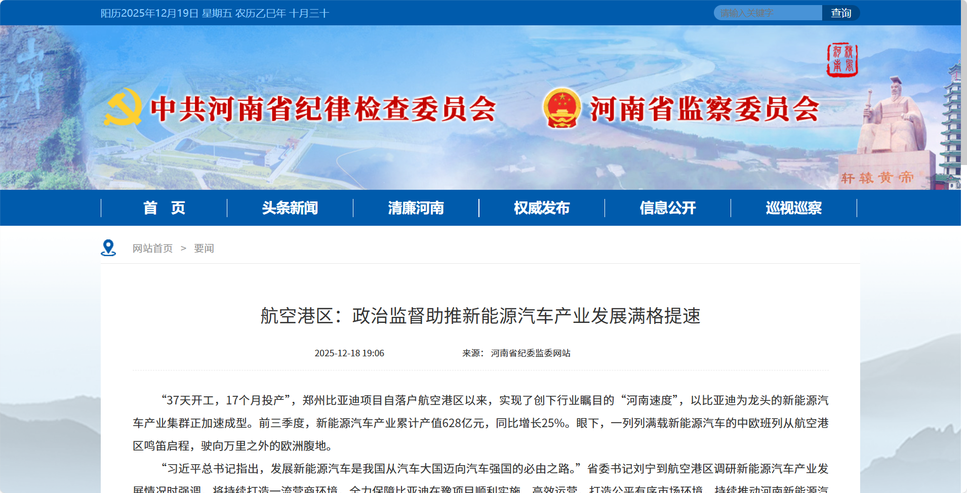 “习近平总书记指出,发展新能源汽车是我国从汽车大国迈向汽车强国的必由之路。”省委书记刘宁到航空港区调研新能源汽车产业发展情况时强调,将持续打造一流营商环境,全力保障比亚迪在豫项目顺利实施、高效运营,打造公平有序市场环境,持续推动河南新能源汽车产业高质量发展。航空港区纪检监察工委牢牢把握职责定位,立足实际动态优化监督内容,锚定“两高四着力”重大要求,构建“目标—清单—要求—链条—闭环”的责任落实体系,持续优化营商环境,以有效监督加快推进新能源汽车产业高质量发展。